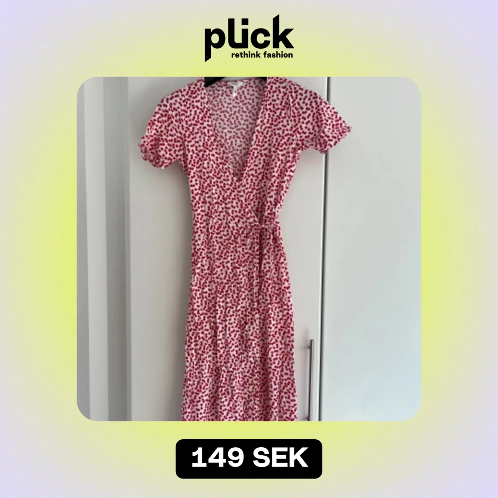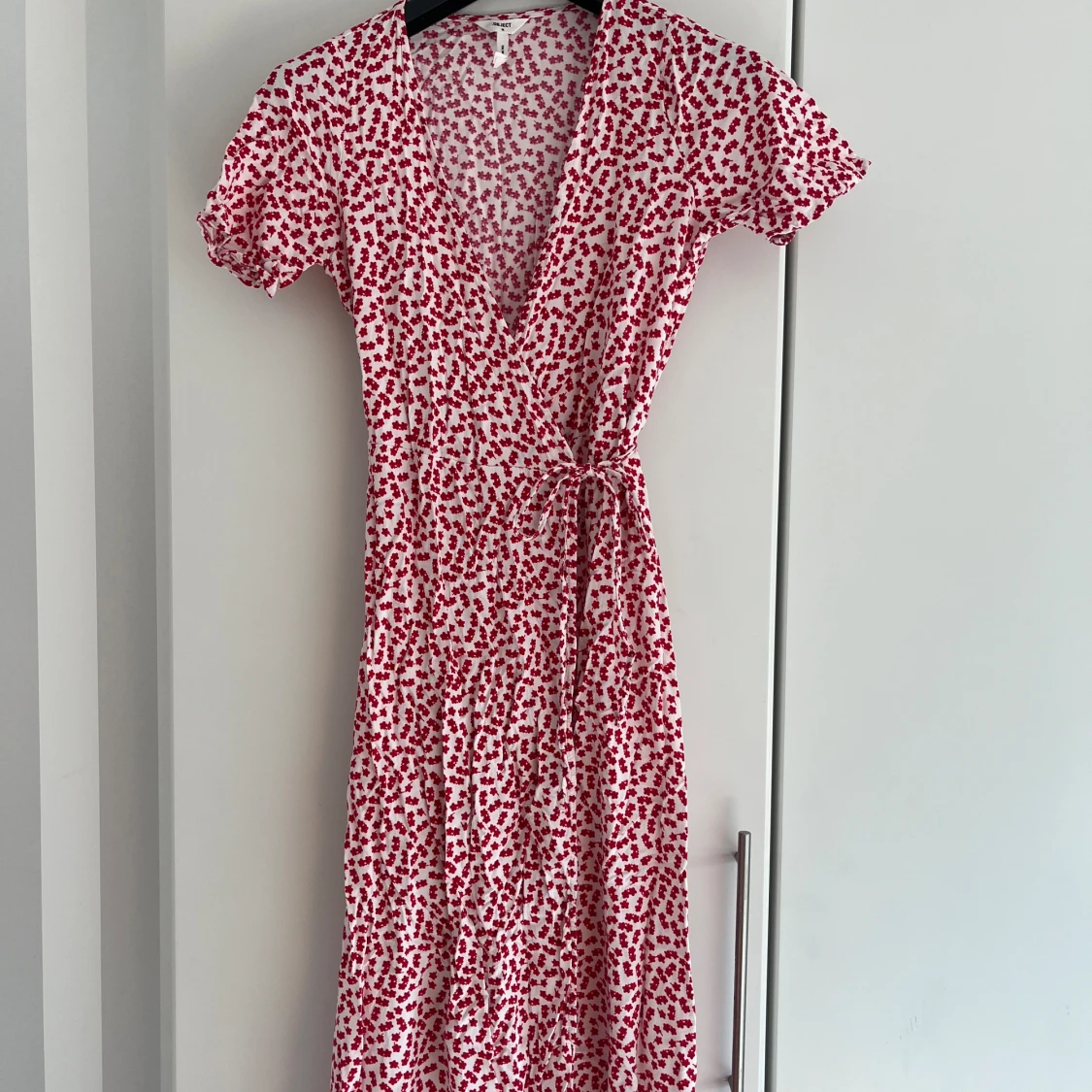 Vit/röd omlottklänning från Object. Storlek 34. Använd 2 gånger, väldigt bra skick.