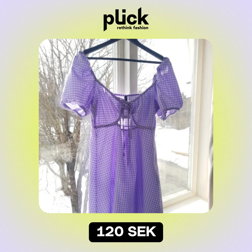 En snygg vardags-klänning som aldig är använd med prislapp kvar! Har en knytbar öppning vid bysten som är så fin Är en ljus lila rutig kläning som går just över knäna💗