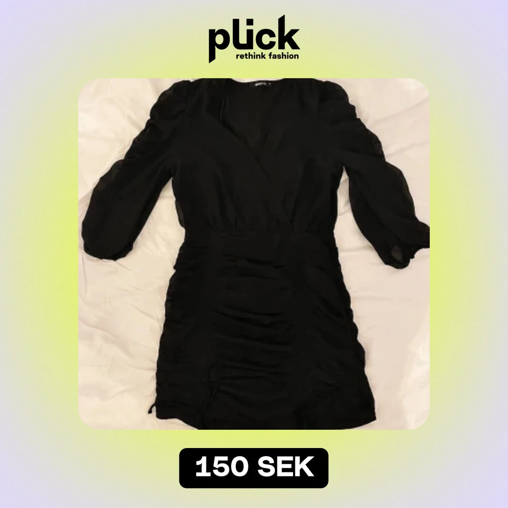 Superfin svart klänning från Gina tricot i storlek 38 som inte säljs längre! Klänningen är använd men fortfarande i ett väldigt bra skick. Passar både vardagligt och festliga tillfällen. Dragkedja finns på sidan av klänningen. Pris kan diskuteras 🌸🌸