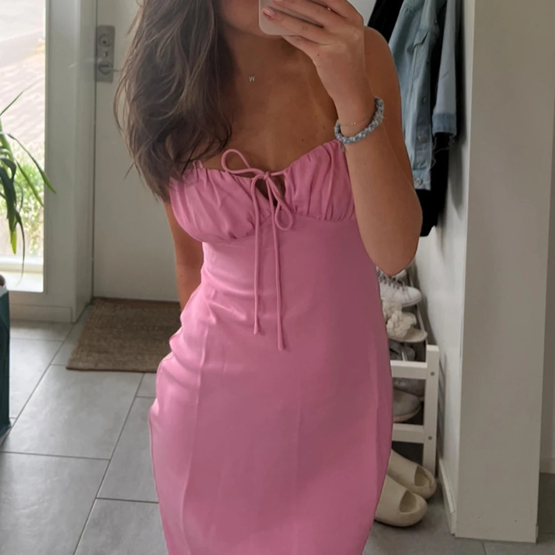 Säljer min långklänning i satin från Gina🩷Använd fåtal gånger och är i fint skick!