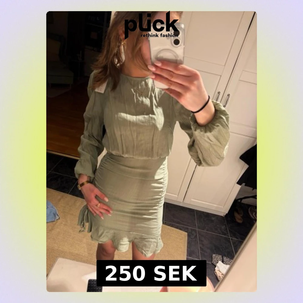 Säljer en ljusgrön kortklänning med långärmade puffärmar och omlott-detalj. Klänningen har snörning i sidan och volangkant nedtill. Passar till sommar awn likså till stranden! Perfekt för vår och sommar. Något för dig som vill ha något coolt och snyggt!💕Prislapp kvar och pris kan diskuteras vid snabb affär!