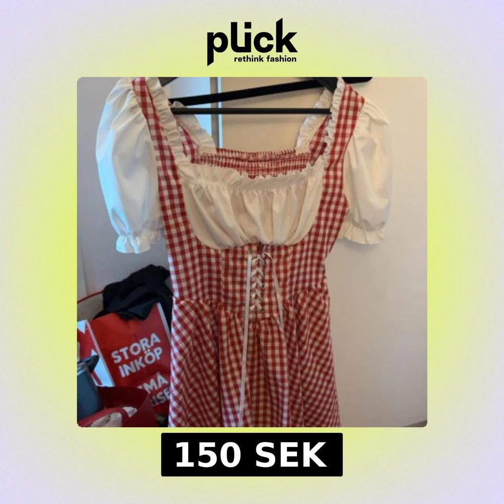 Superfin rödvit rutig klänning med puffiga korta ärmar och snörning framtill. Perfekt om du ska på oktoberfest eller kanske till halloween!