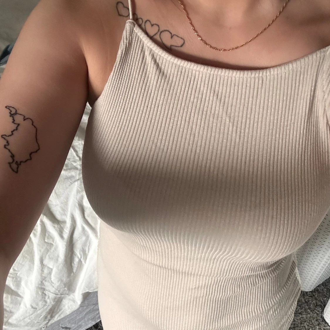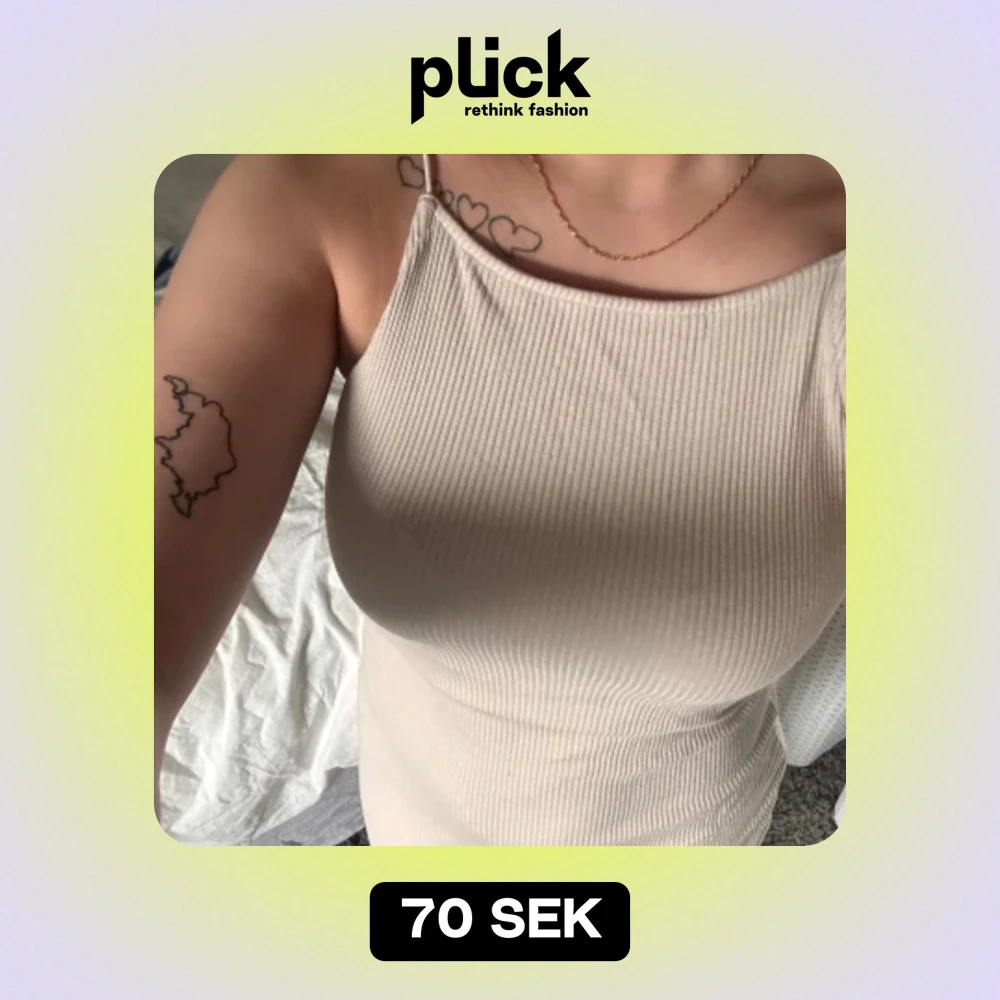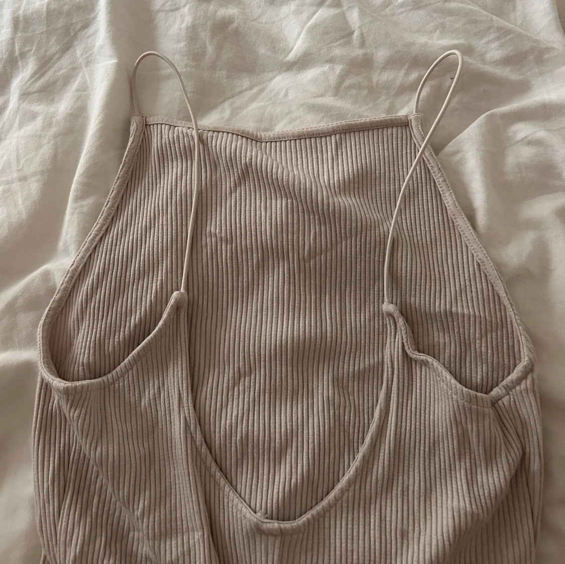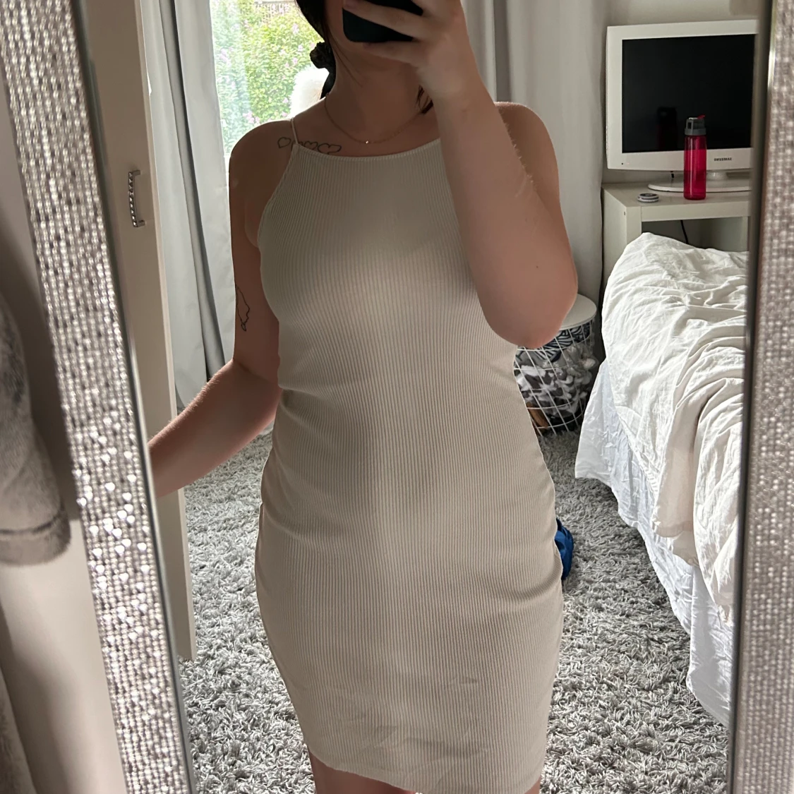 Ljus beige tun klänning, använd en gång, jätte fint skick. Öppen i ryggen, Skönt material. Köpt på hm tror jag.