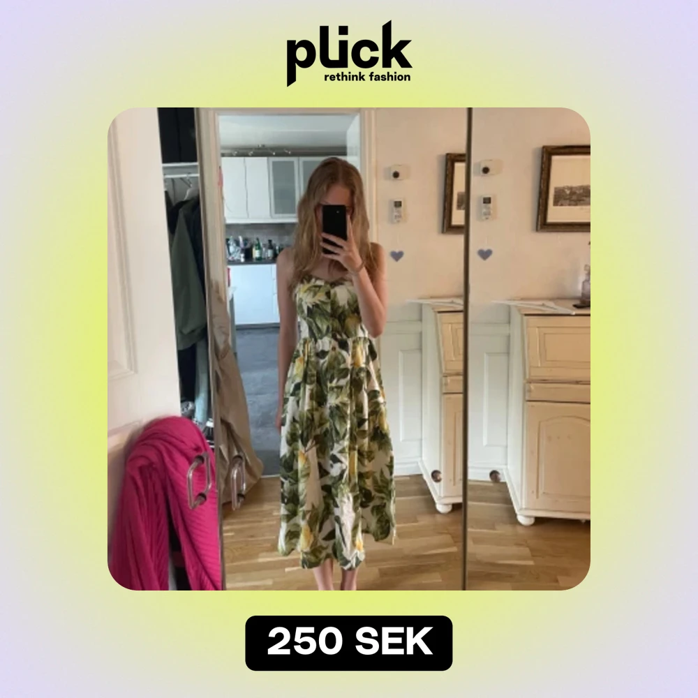 Jätte söt klänning med citron mönster. 🤩🤩 Jag är 172 cm lång och på mig är längden väldigt bra.