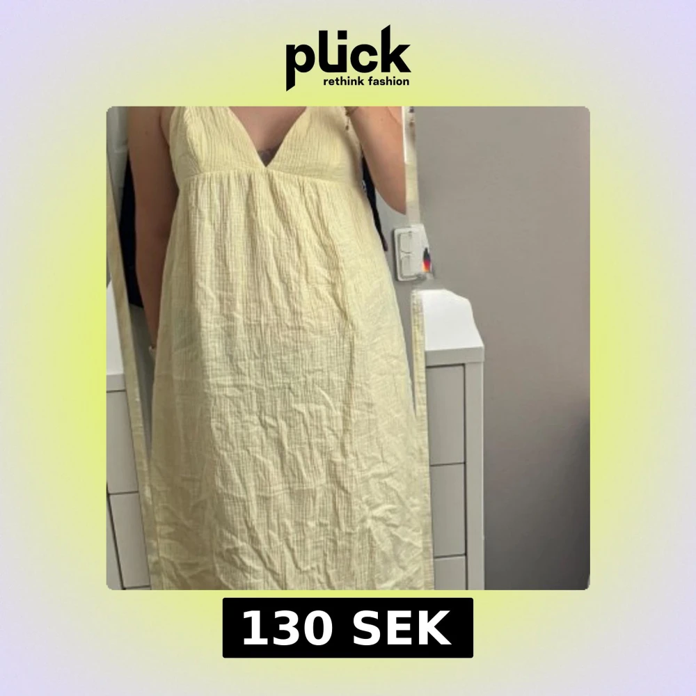 Fin gul klänning från H&M. Perfekt till sommaren, midsommar eller semestern. Luftig modell, bekväm passform. Storlek: xl Nästan ny – använd en gång.