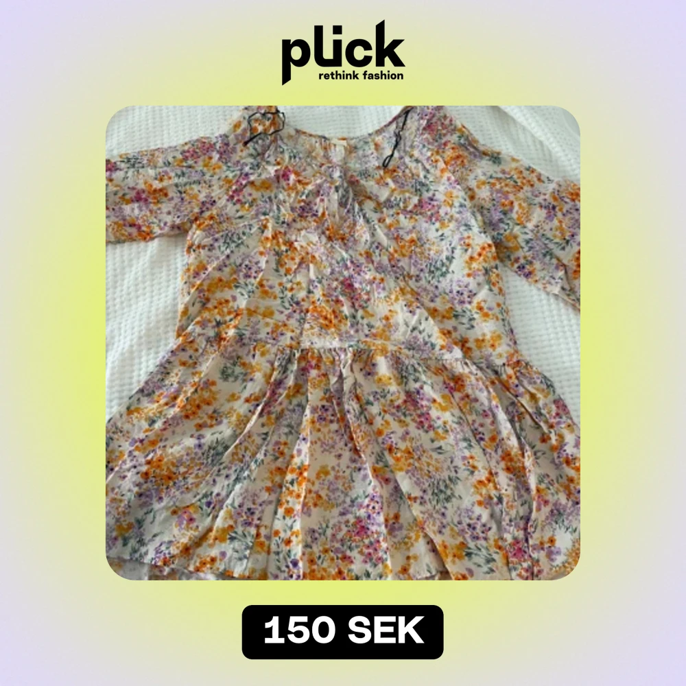 Blommig klänning med puffärmar från H&M. Sparsamt använd, ingenting att anmärka på gällande skicket (skulle behöva strykas) Storlek M. Se bild för material.