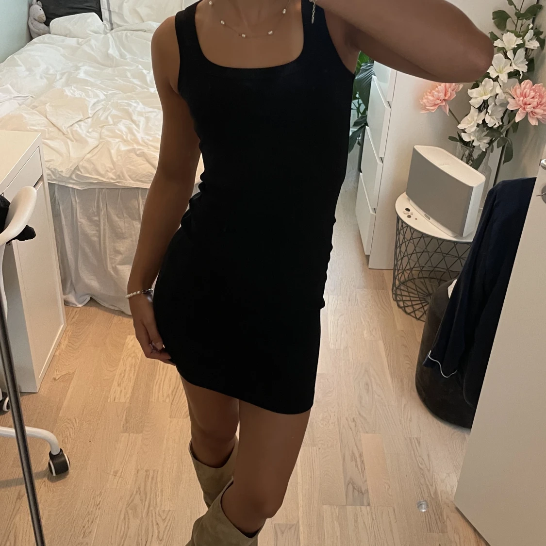 fin basic klänning som går att styla på så många sätt och göra den uppklädd! Perfekt till hösten. Super skönt ribbat material, stretchig💕Säljer samma i vitt kolla in mitt konto✨