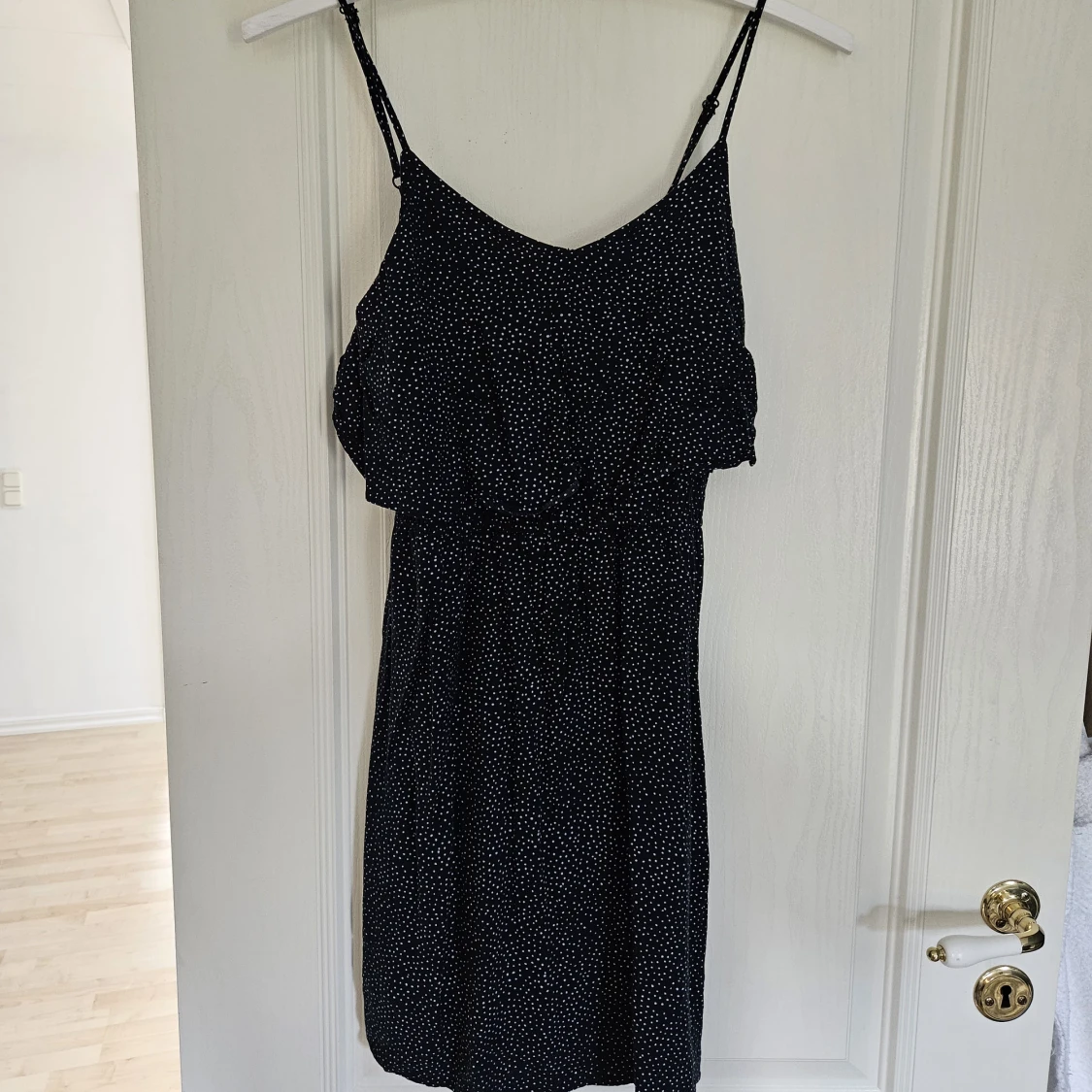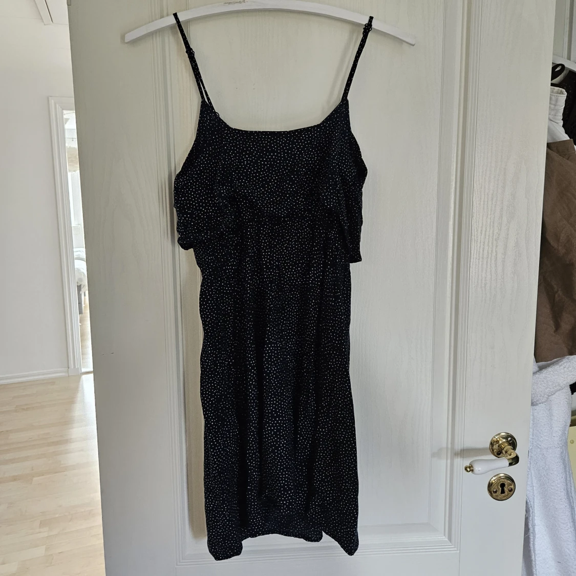 Superfin mörkblå klänning med vita prickar från HM. Storlek 36