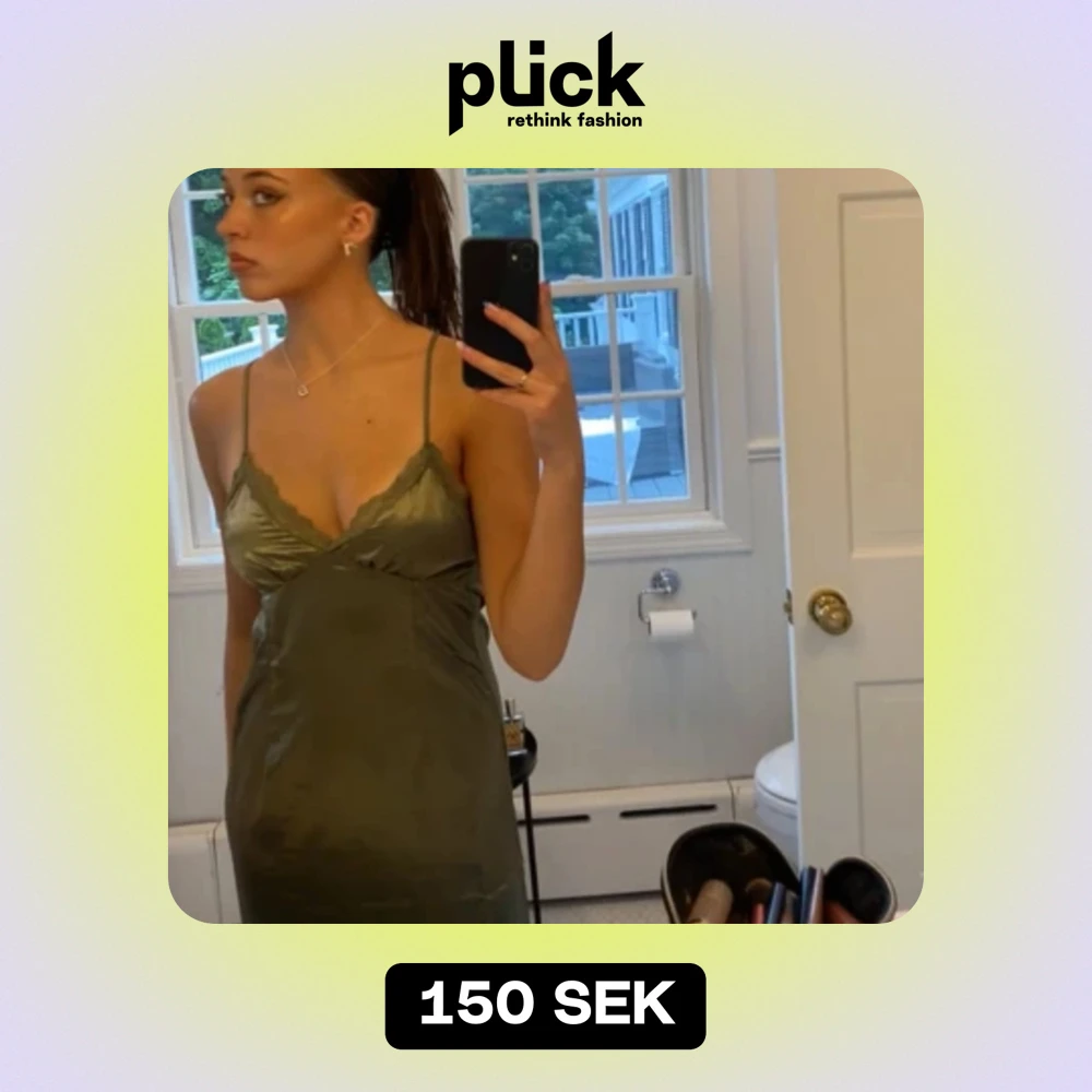 Säljer denna eleganta gröna silkesklänningen, köpt i new york på H&M🤎 Snabb budgivning i DM📩