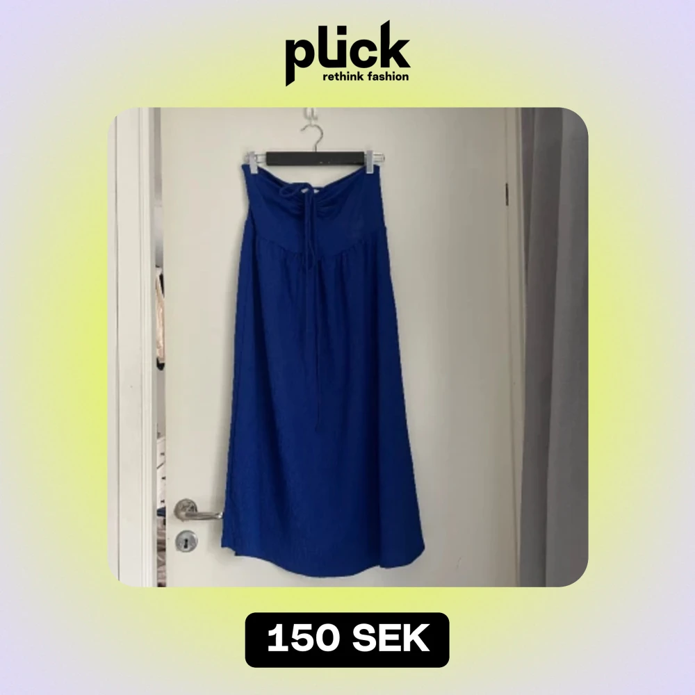 Blå klänning med snörning fram till. Jag är 165cm och klänningen går till mitten på smalbenet. Jag har använt den ett fåtal gånger så den är i mycket bra skick.