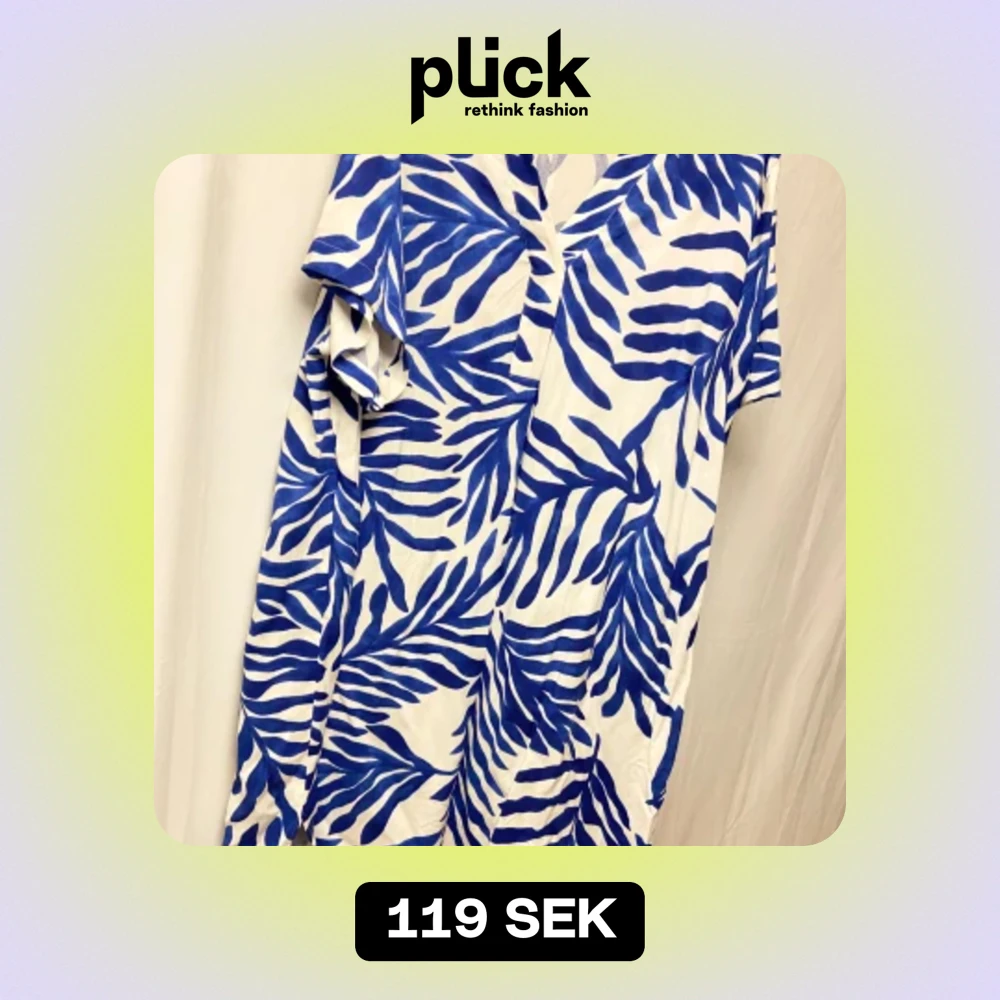 Så härlig somrig klänning, aldrig använd! Storlek XL men är lös passform så passar de flesta 🥰 Vit med mörkblått bladmönster, i lite handmålad stil. Tyget är så fint, liksom lätt och skönt men inte genomskinligt alls. Perfekt sommar/strandklänning ☀️