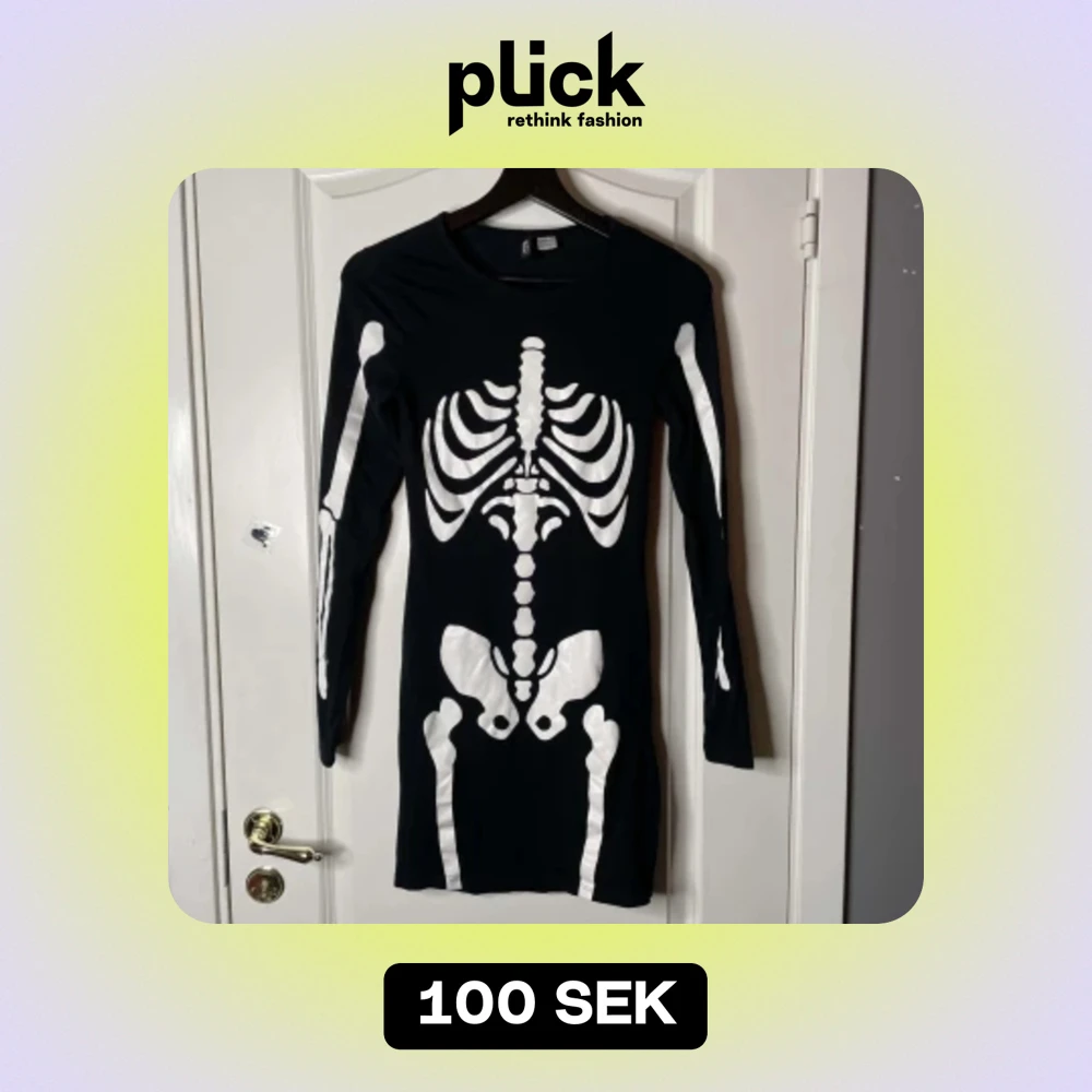 Svart klänning med skelett-tryck i storlek 34. Använd 1-2 gånger.