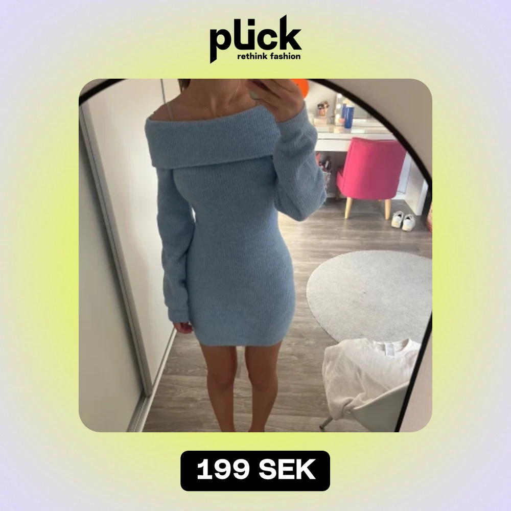Säljer en ljusblå stickad klänning från h&m! Endast använd en gång men kommer inte till användning längre.