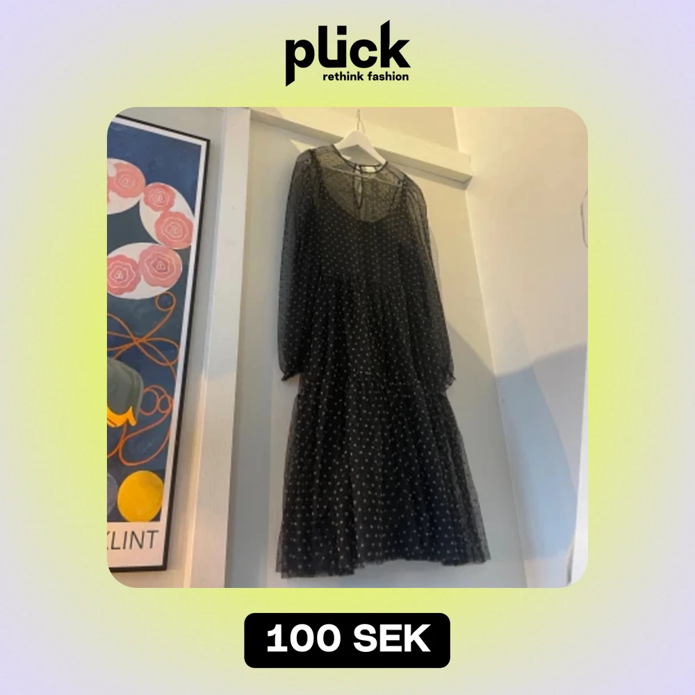 Svart klänning med beiga prickar från h&m i tyll. Åtsittande underklänning under. Smickrande på. Puffärm.