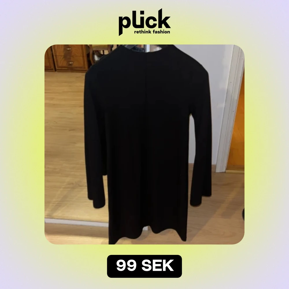 svart klänning ifrån kappahl som går att klä upp och ned🩷 dragkedja i ryggen och utsvänga ärmar, och klänningen är i storlek M🩷 superbra skick och inga defekter