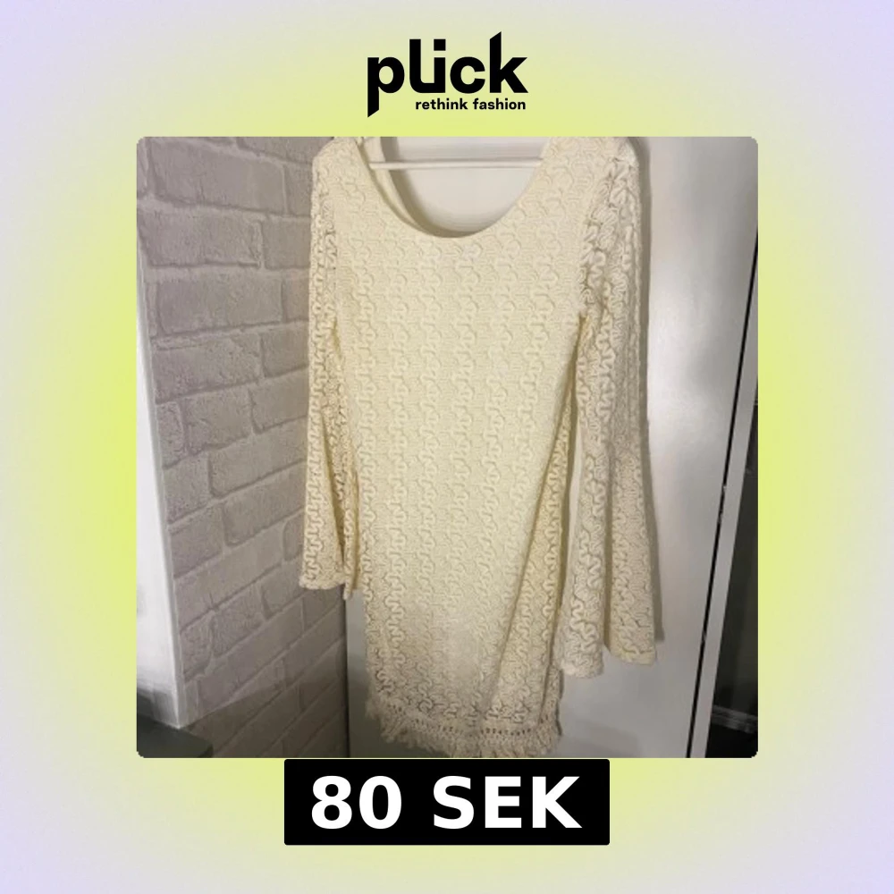 Fin klänning, har ett vitt tyg under (se bild 4) vilket gör att den inte är lika genomskinlig, storlek s / m. Volang armar samt detaljer nedtill