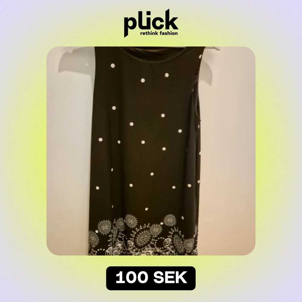 Klänning med vita prickar och mönster från Shein. Undertyg. Storlek M. Material 100% polyester. Använt klänningen fåtal gånger. Bra längd.