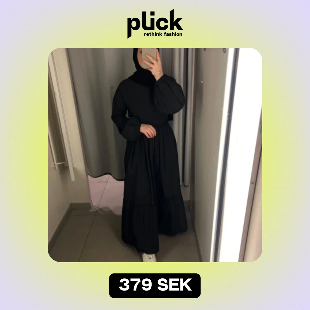 Säljer en elegant svart långklänning med långa ärmar. Klänningen har en lös passform och är perfekt för både vardag och fest. Den är tillverkad i ett mjukt och bekvämt material som faller fint.