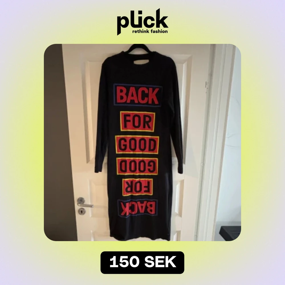 Lång klänning med tryck på framsidan. Svart/mörkblå. Inte figursydd men något tight.