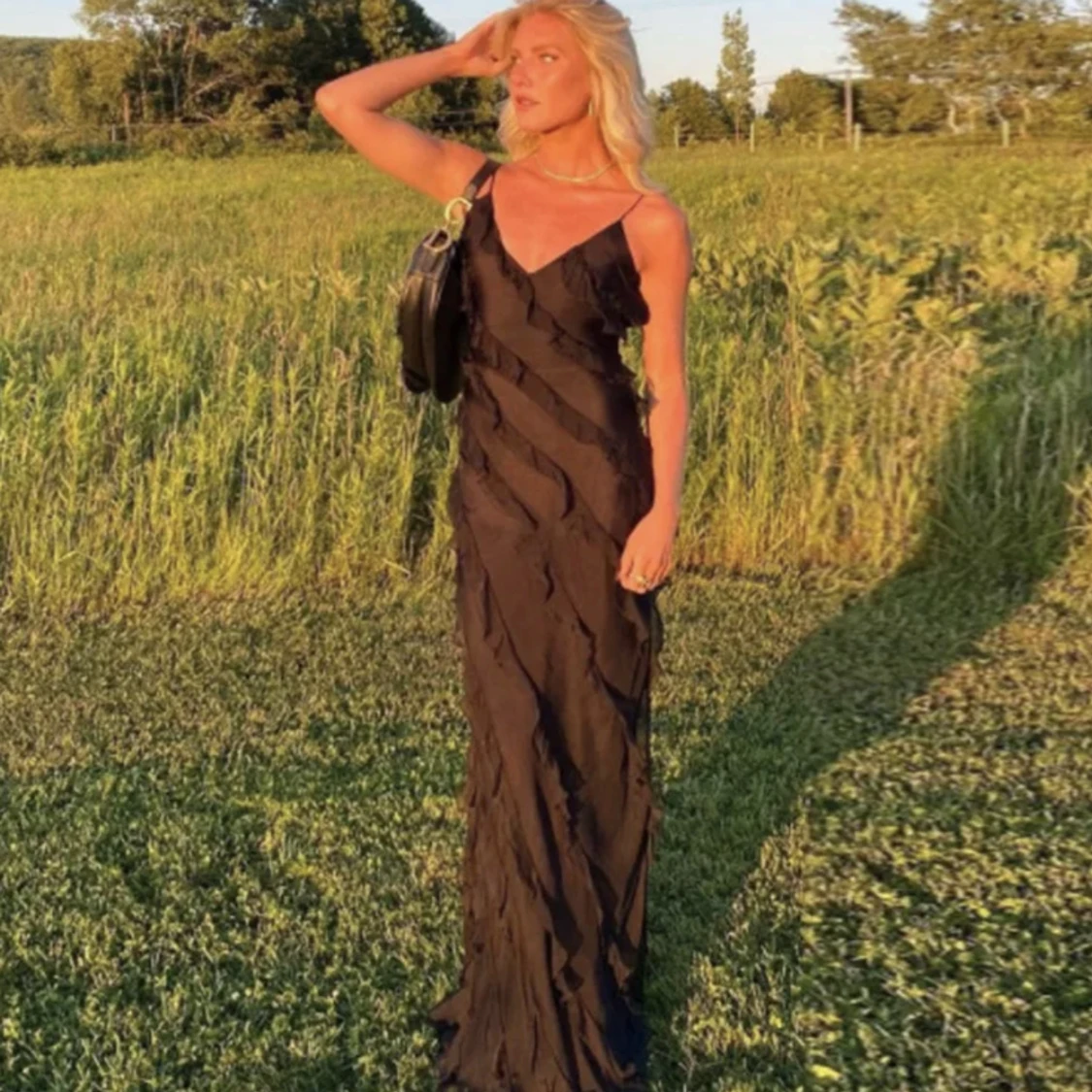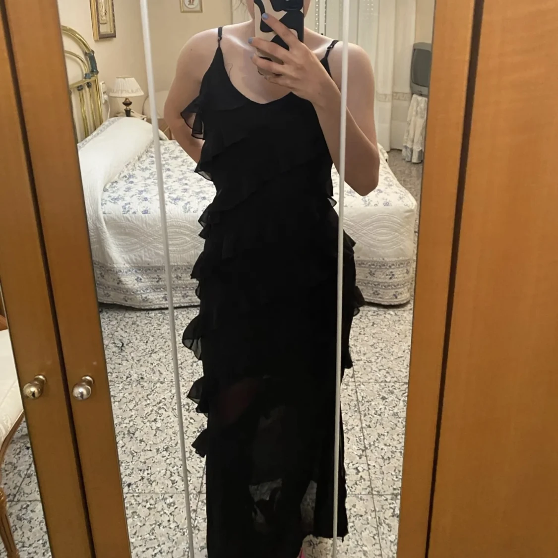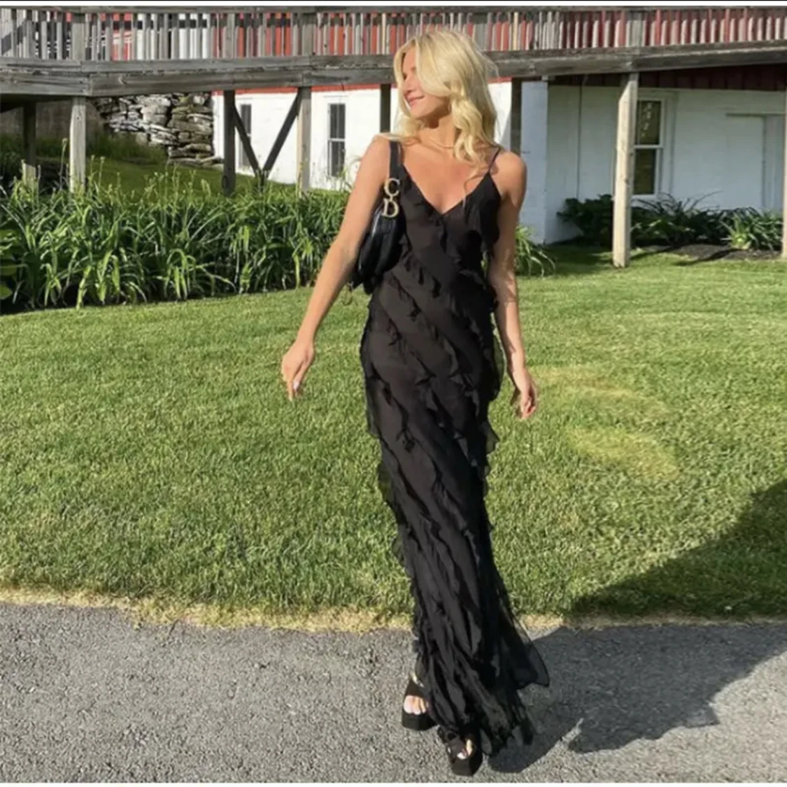 Svart lång volangklänning