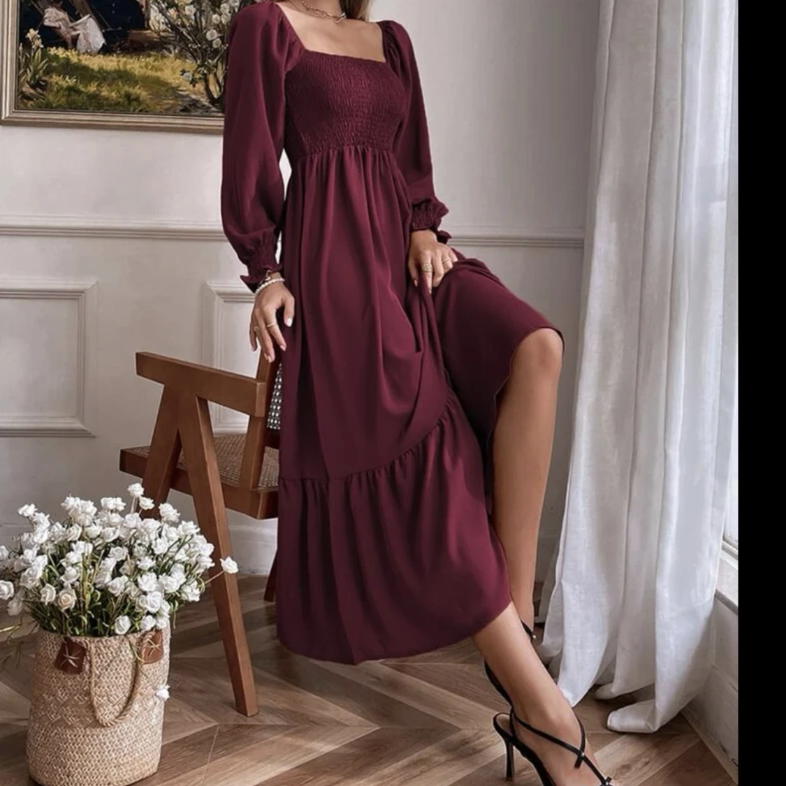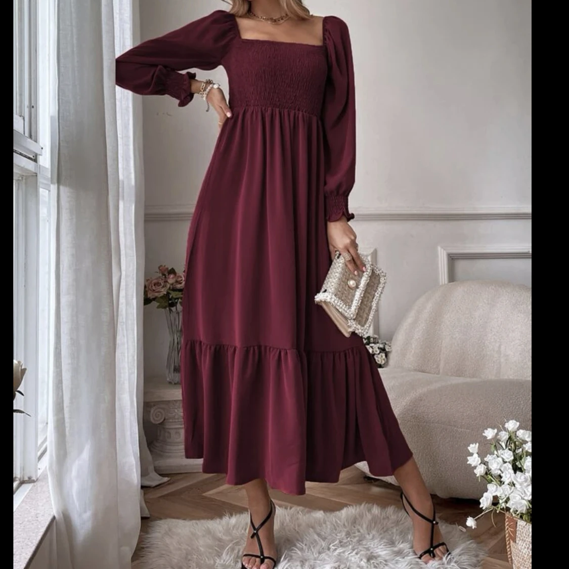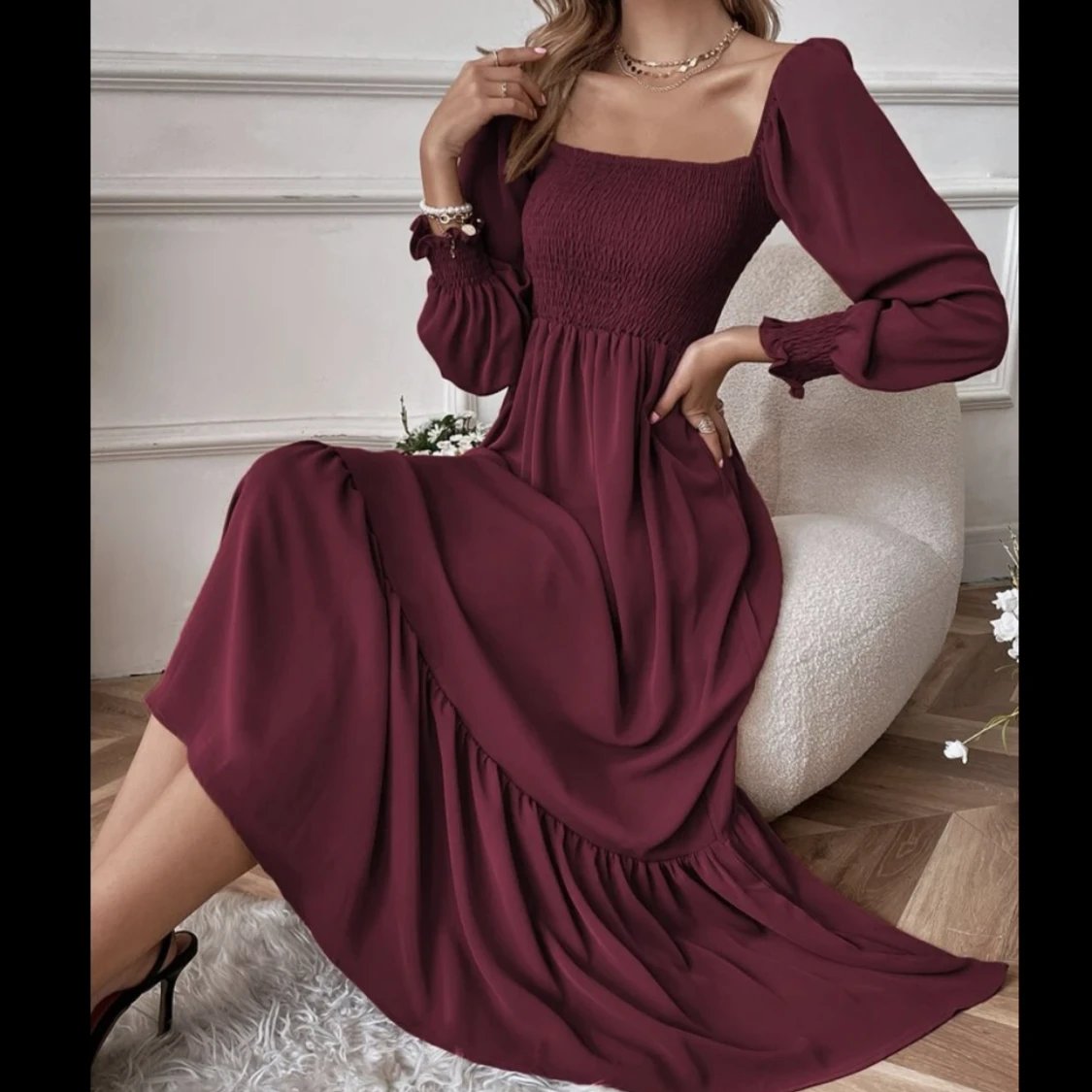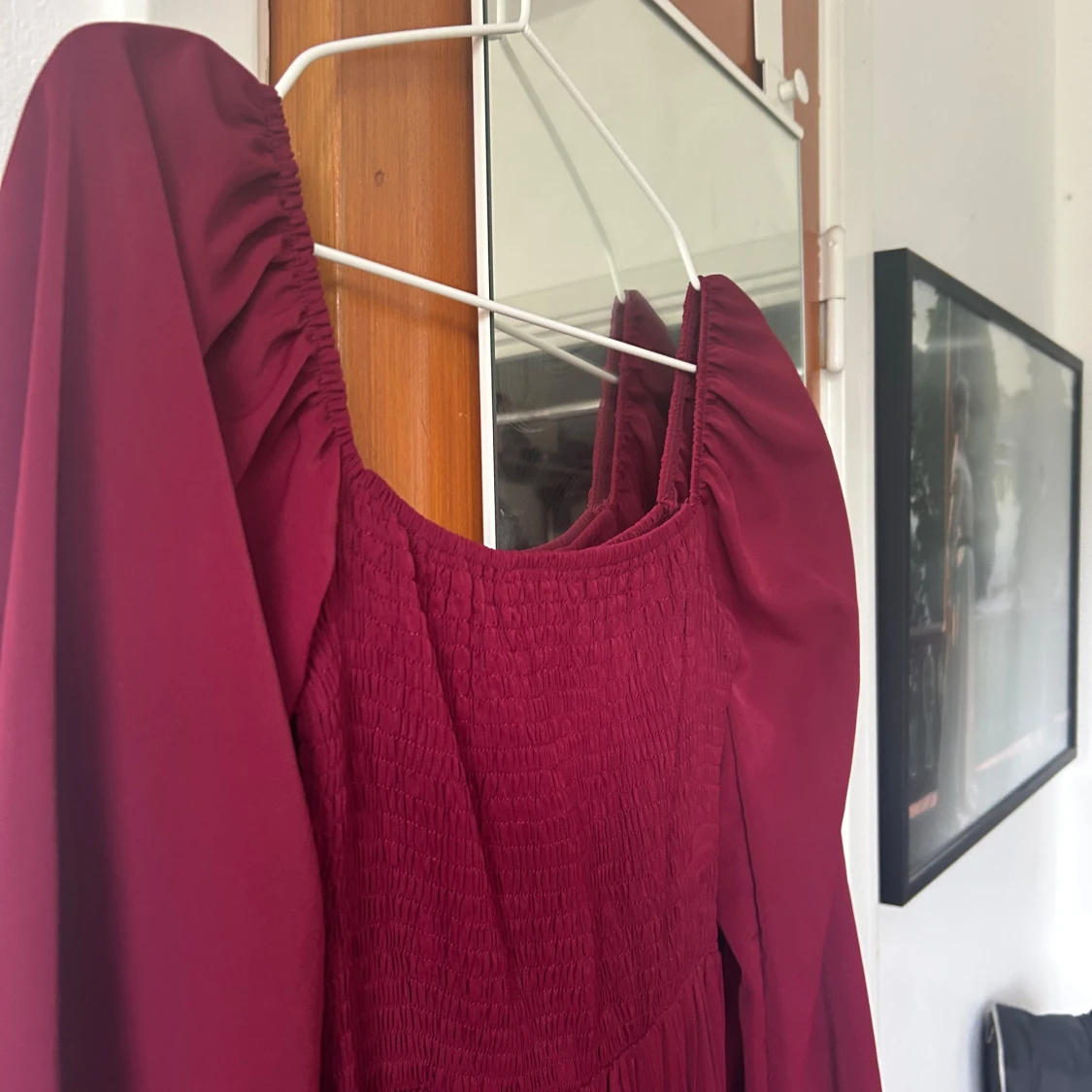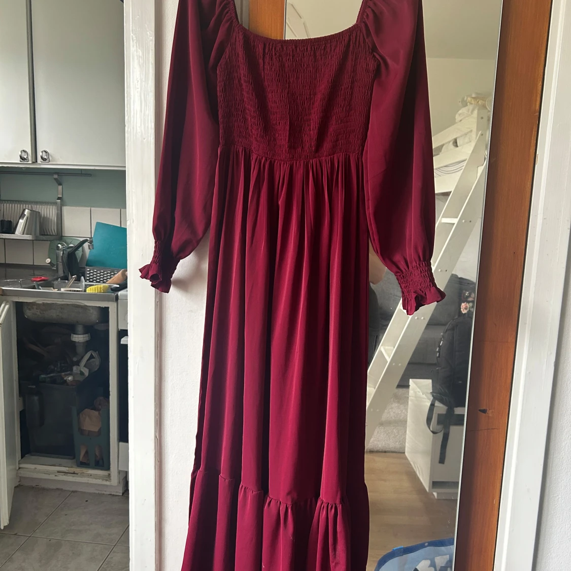 Vinröd klänning med mycket bra kvalite. Storleken är justerbar, det passar även för dem som är XS-S-M. Priset kan diskuteras.
