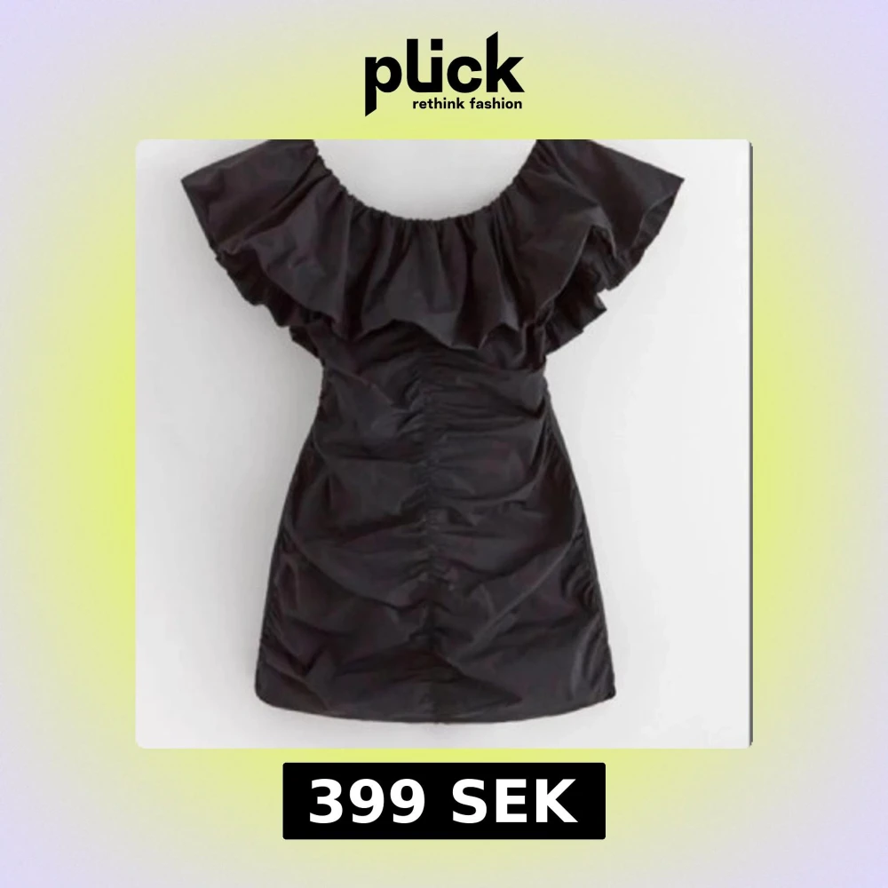 Supersnygg svart offshoulder klänning från Lindex. Helt ny och oanvänd. Storlek XS. Perfekt nu till jul eller nyår.