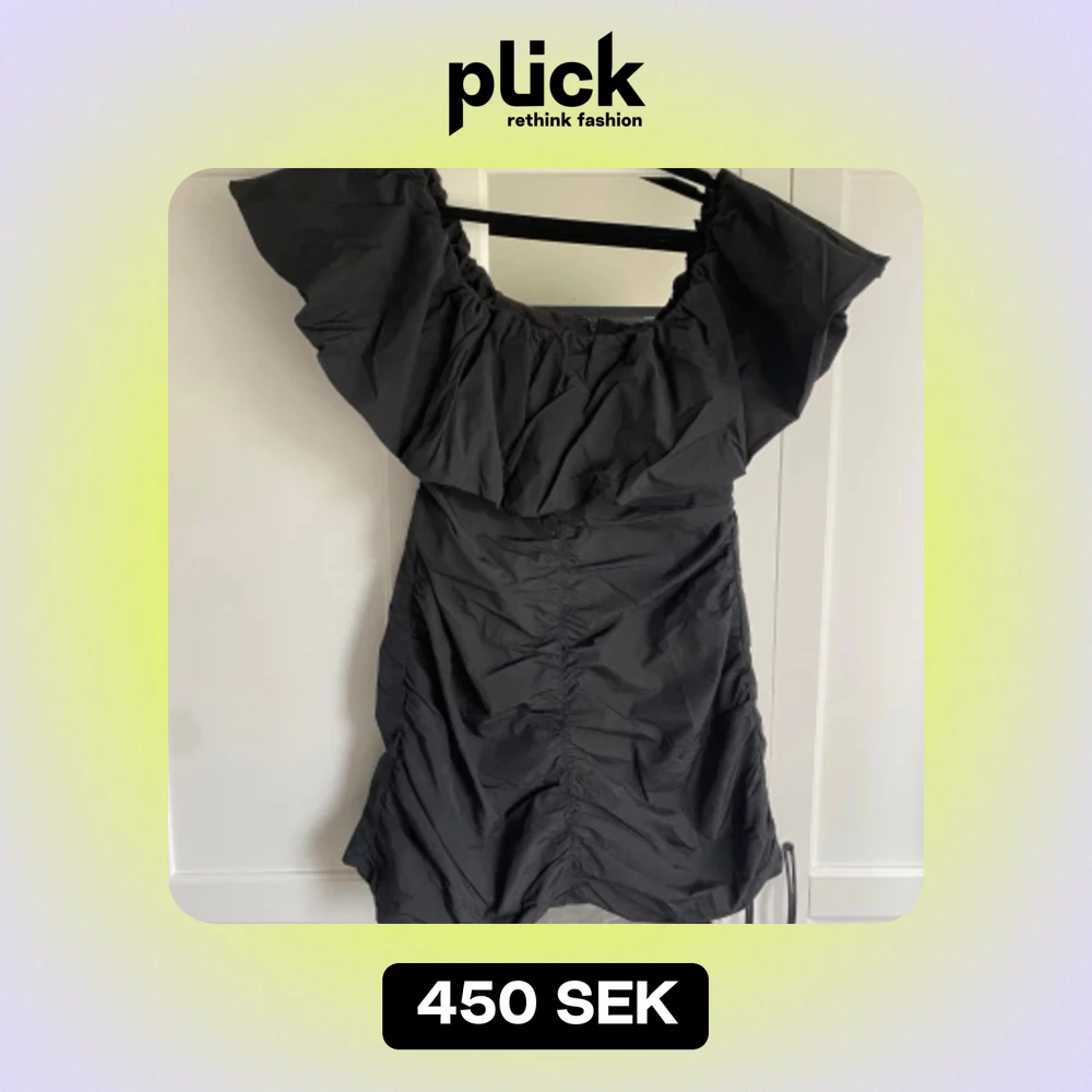 Supersnygg svart off-shoulderklänning! Använd en gång så den är i väldigt fint skick 😊😊