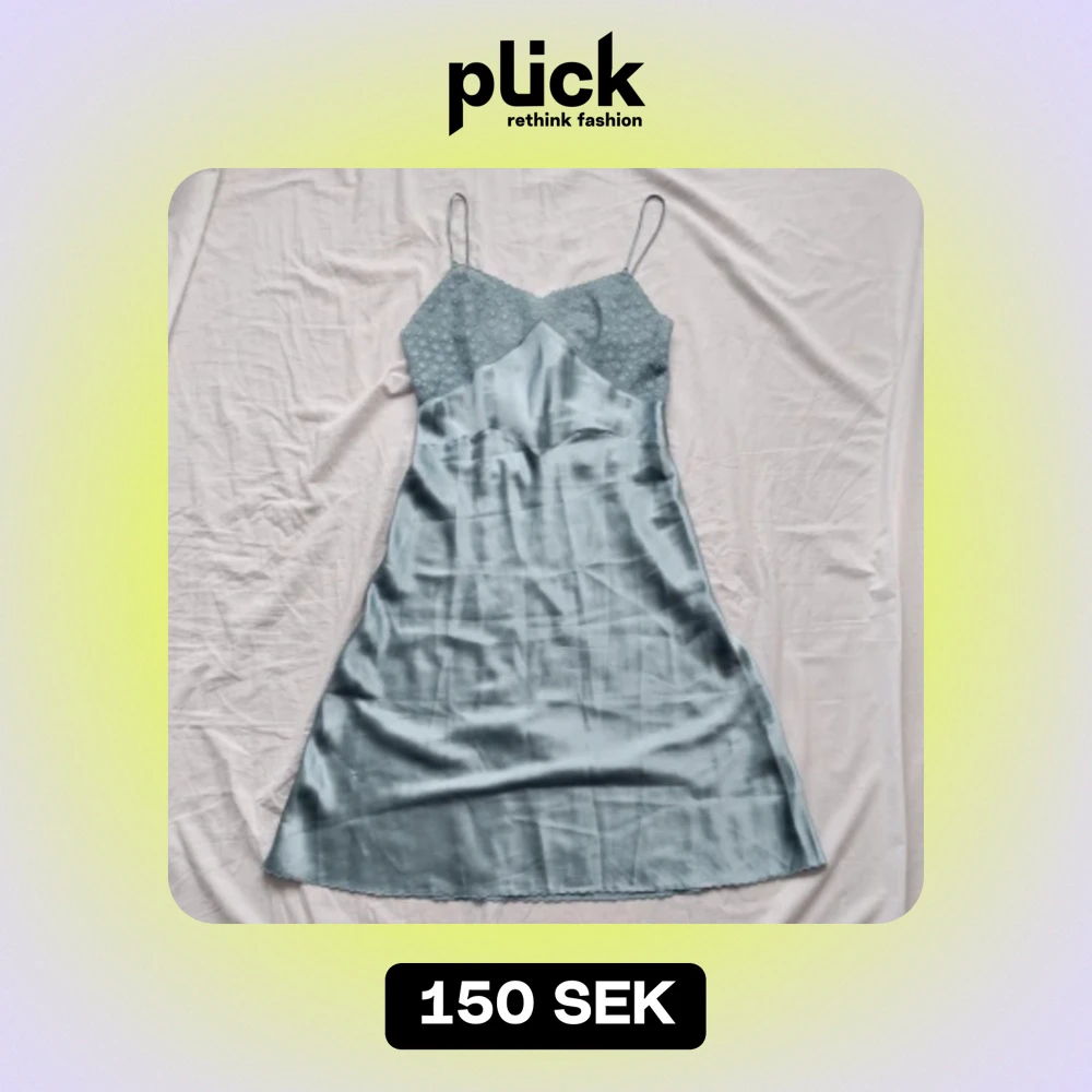 En jättefin ljusblå slip klänning/lingerie klänning. Är av 100% mullbärs silke tydligen. Köpte den second hand och jag har bara provat den. Den når precis över knäna på mig. Har jättefina broderade blommor på bysten men det är lite genomskinligt.