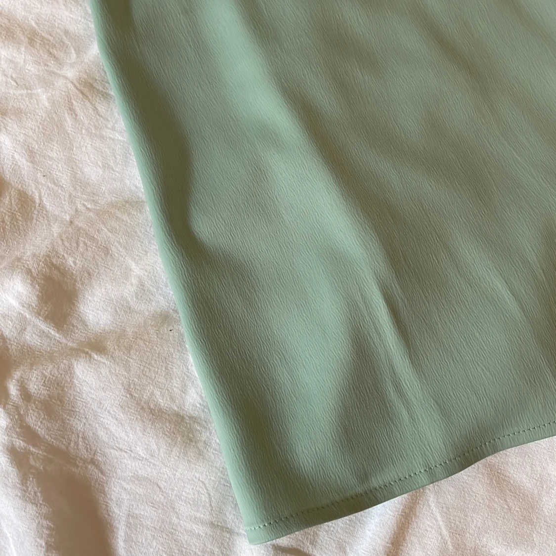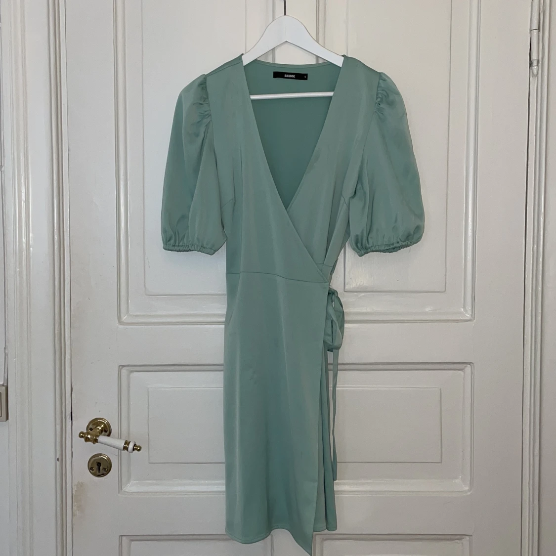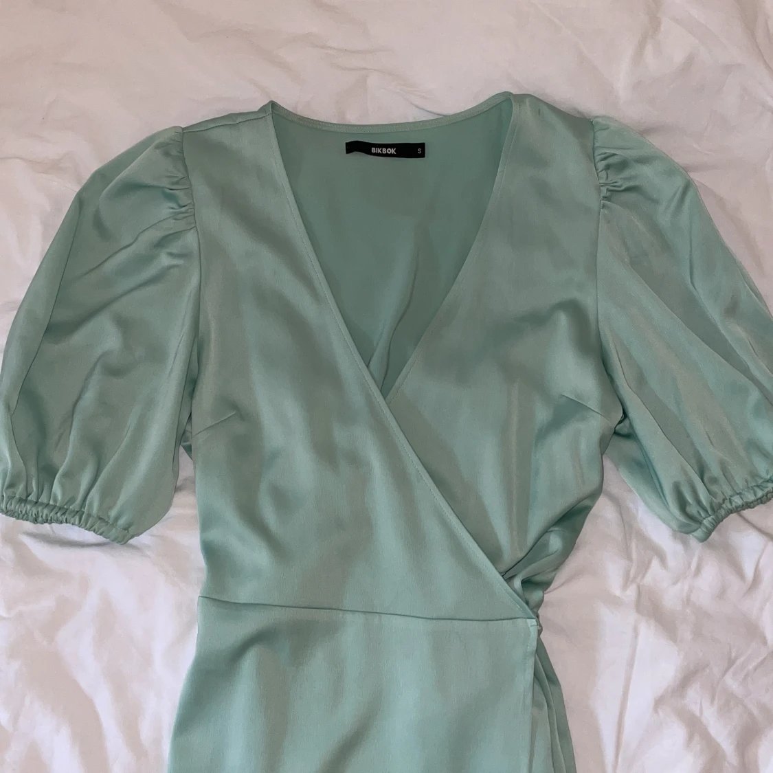 Köpte denna klänning till midsommar 2018 och har bara använt den en gång. Klänningen har en ljusgrön/mint färg och är i satin liknande material. Jättefin och bekväm klänning men inte min stil längre 💚🤍