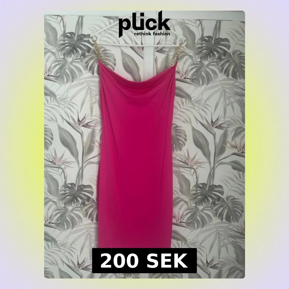 Supersnygg rosa kortklänning från By Swan med tunna axelband i guldfärgad kedja. Klänningen har en draperad urringning och är figurnära i modellen. Perfekt för dig som vill sticka ut och älskar färg! Materialet känns mjukt och följsamt.