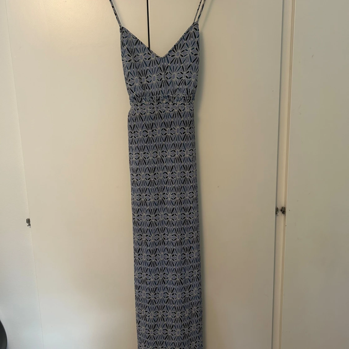 Snygg blå långklänning med smala axelband från Mango i storlek S för 250kr. Använd fåtal gånger.