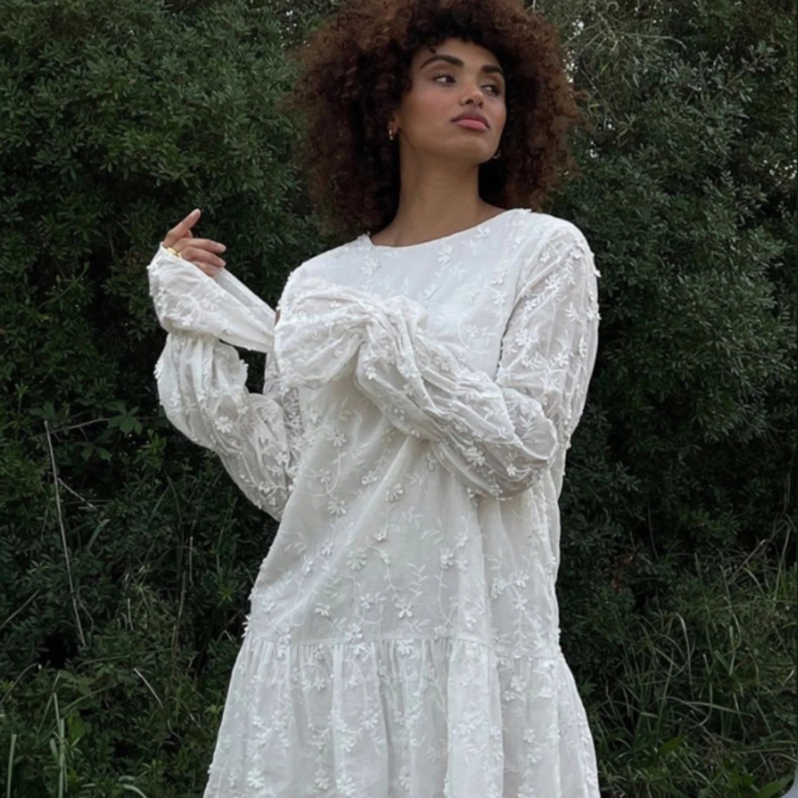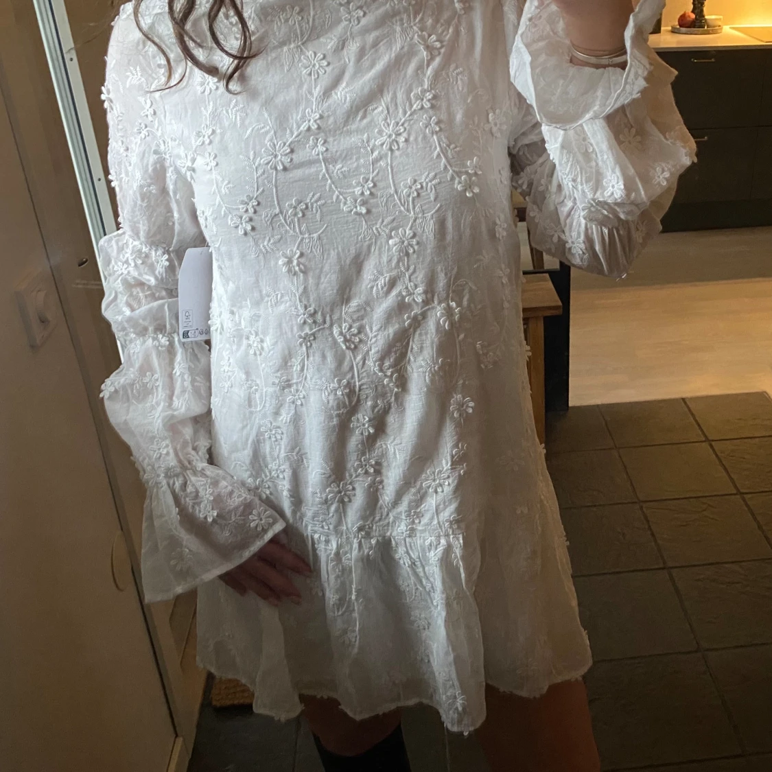 En jätte fin vit blomning klänning med ärmdetalj, perfekt till studenten. Den är helt oanvänd med alla prislappar kvar.