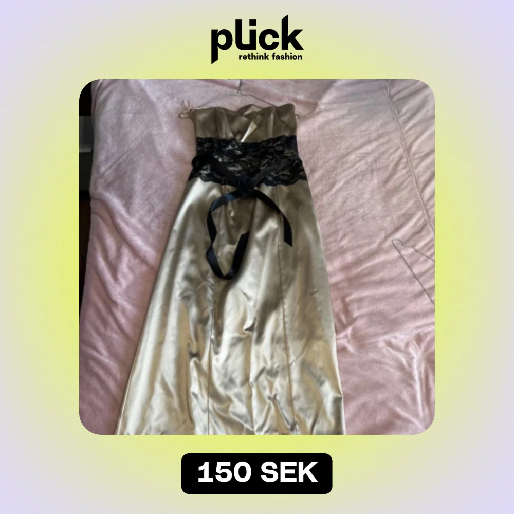 Färgen är guldig och det finns ett svart mönster tillsammans med en svart blomma som kommer vid bröstet. Den är i 38. Finns i värsta Stockholm.