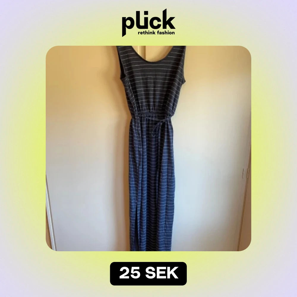 Randig klänning med resår och knytband i midjan. Slits på båda sidor. Fint skick.