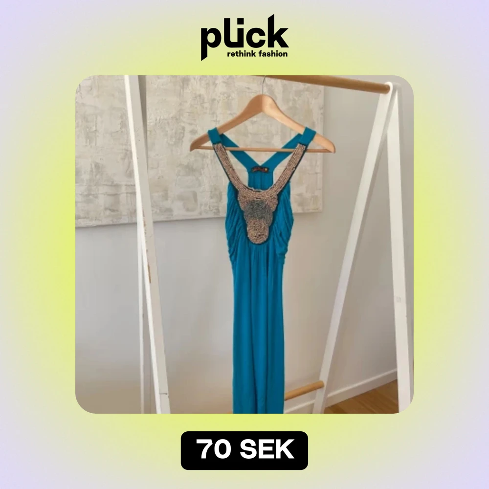 Klänning i fint skick med träpärlor. Storlek S / M.