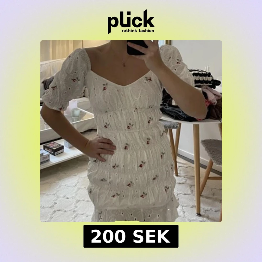Gullig blommig kort klänning med volangdetaljer i fint skick. Köpt på plick men den har inte kommit till användning (Första bilden lånad) Kom med prisförslag💞 Obs storlek M men sitter mer som S pga liten i storlek.