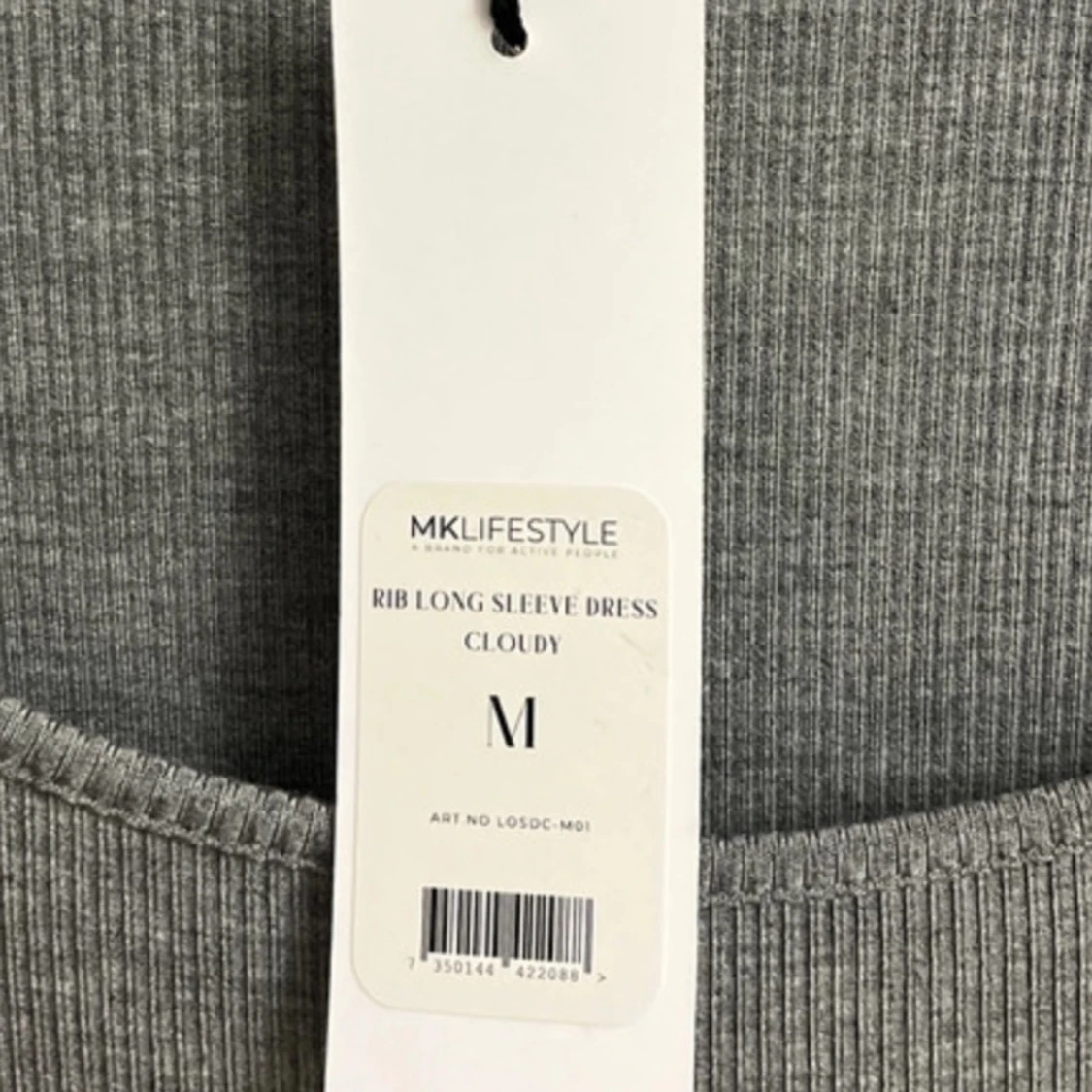 Grå ribbad klänning från MKLIFESTYLE i färgen cloudy prislapp kvar på klänningen