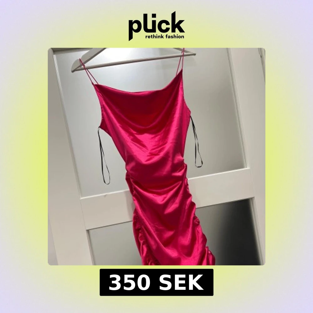 Snygg och glansig rosa kortklänning i satin med tunna axelband och draperad framsida. Klänningen har snörning längs sidan som ger en cool rynkad effekt och en feminin siluett. Perfekt för dig som vill sticka ut med färg och stil.