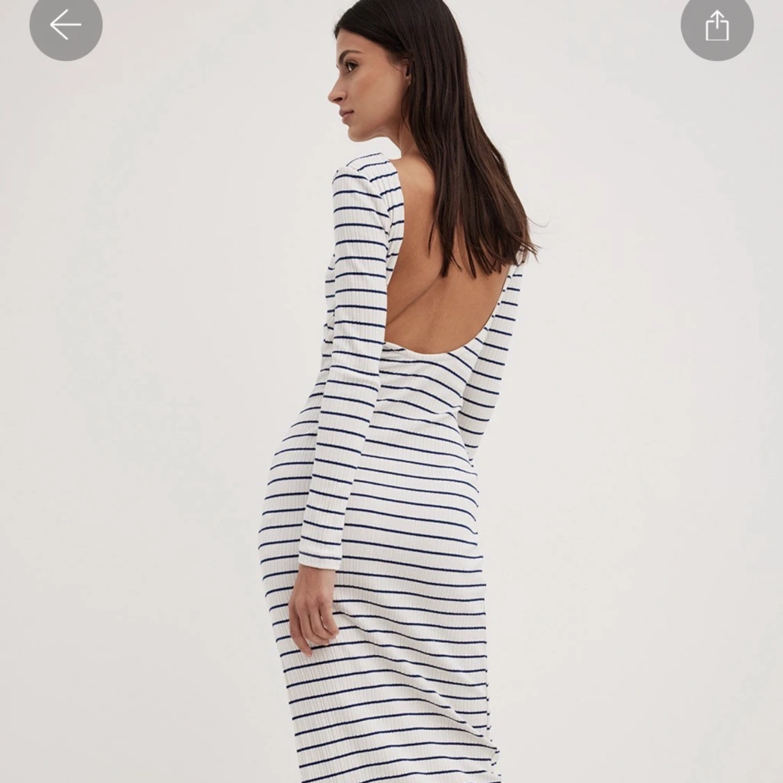 Randig långklänning med slits, ränderna är åt de blå hållet! Använd vid 2 tillfällen så den är i fint skick. Den är stretchiga så skulle vilja påstå att den passar en st M även fast det är S!! Jag är 1,66 cm och tycker att den är perfekt i längden