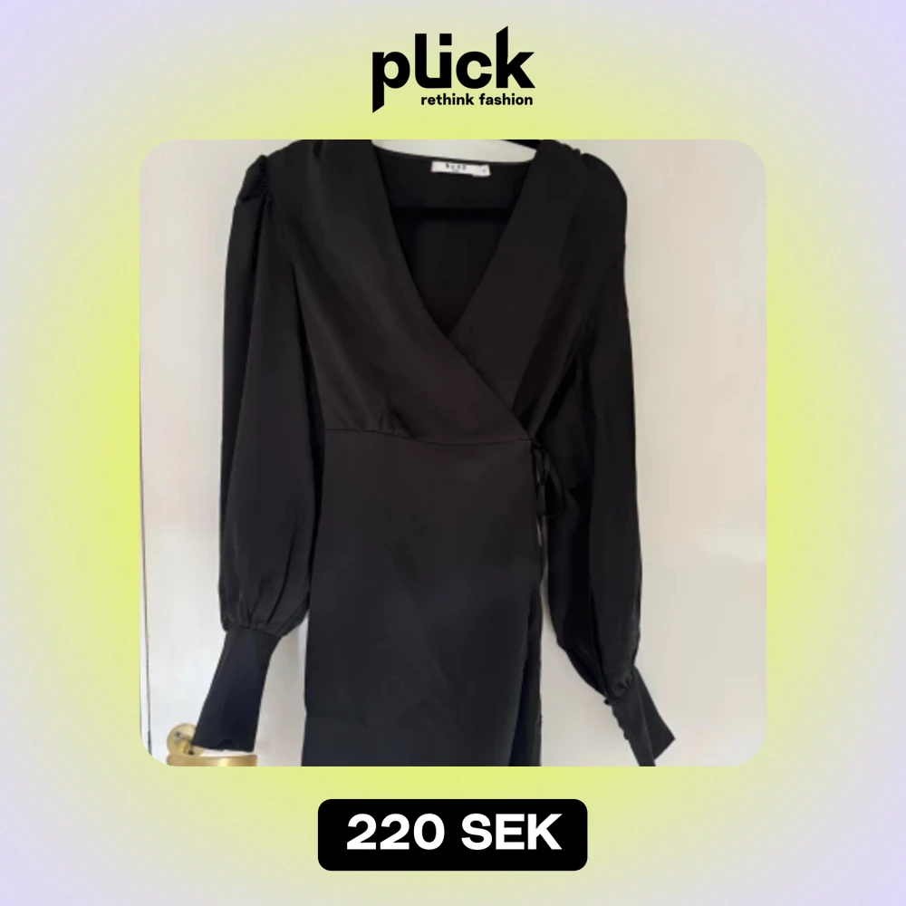 Svart omlottklänningen i satin från Na-kd. I storlek 36. Använd 1 gång. Slutsåld på hemsidan.
