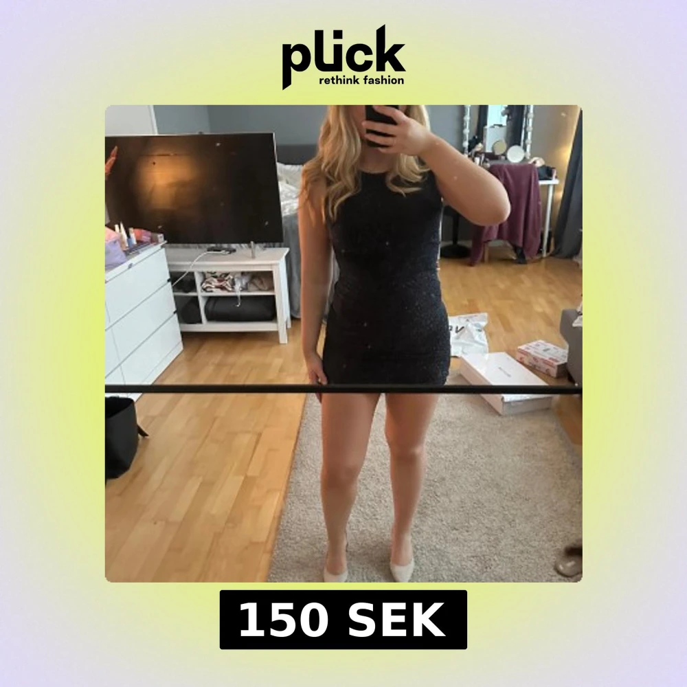 Snygg svart glittrig klänning med en tight passform. Passar perfekt till nyår eller andra festligheter🥂 storlek s