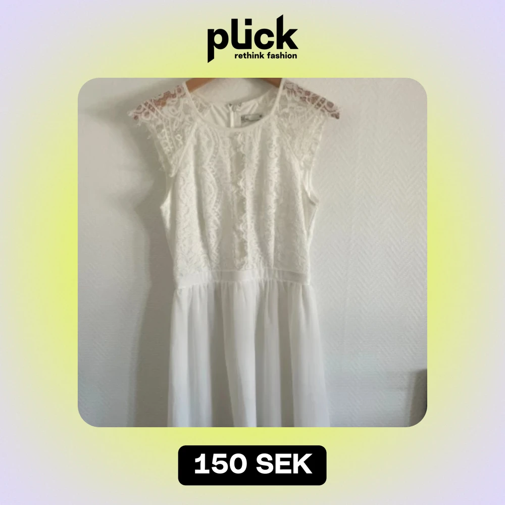 Vit klänning från Nelly som passar som studentklänning eller avslutningsklänning. Den har använts två gånger och har ett litet hål vid axeln som endast syns om man kollar nära, då jag har haft den i några år. Annars är den i bra skick🤍