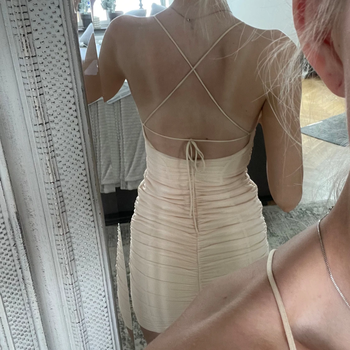 helt ny klänning från oh polly i storlek 36. sitter så fint men kommer aldrig till användning. köpt för 900 men säljer för 300