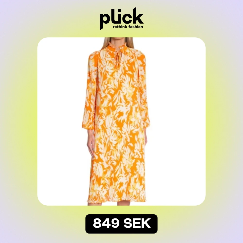 Säljer en helt oanvänd klänning i färgen orange och vit, Y.A.S KLÄNNING YASPIPPO LS MIDI LEAF.