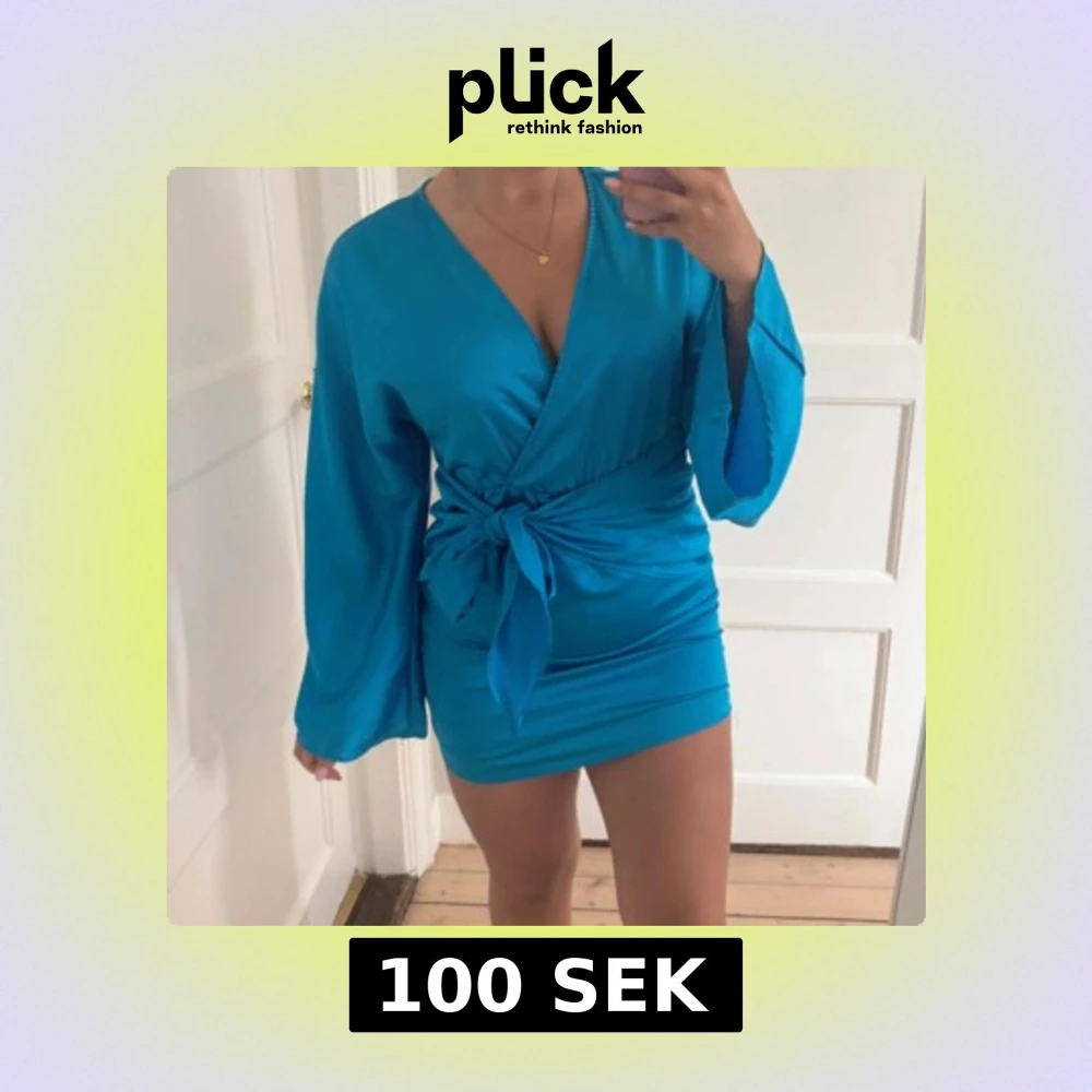 Blå klänning från Gina Tricot i storlek S. Klänningen knyts i midjan. Endast använd en gång.
