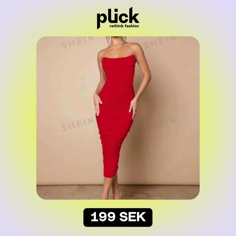 Röd klänning som aldrig har använts bara testats. Man får en fin form i den + den är väldigt stretchig.