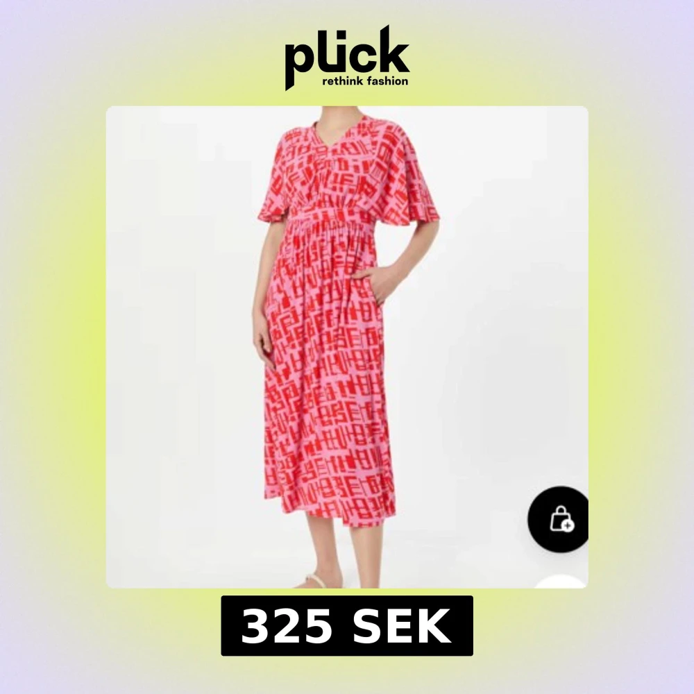 Rosa och röd mönstrad klänning med volangärm