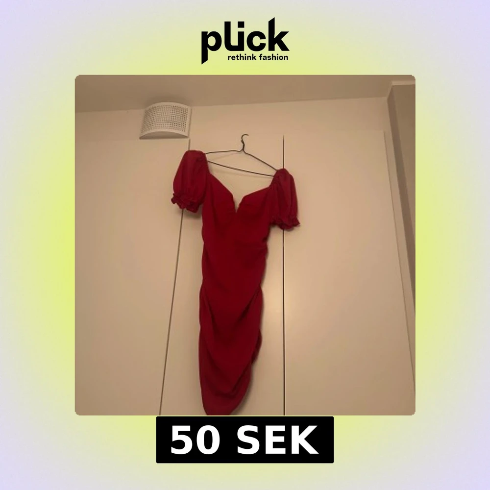 Supersnygg röd långklänning med djup v-ringning och puffiga kortärmar. Klänningen har rynkade detaljer längs hela framsidan och en figurnära passform. Perfekt för dig som vill sticka ut med en statement-klänning. Materialet känns lätt och följsamt.