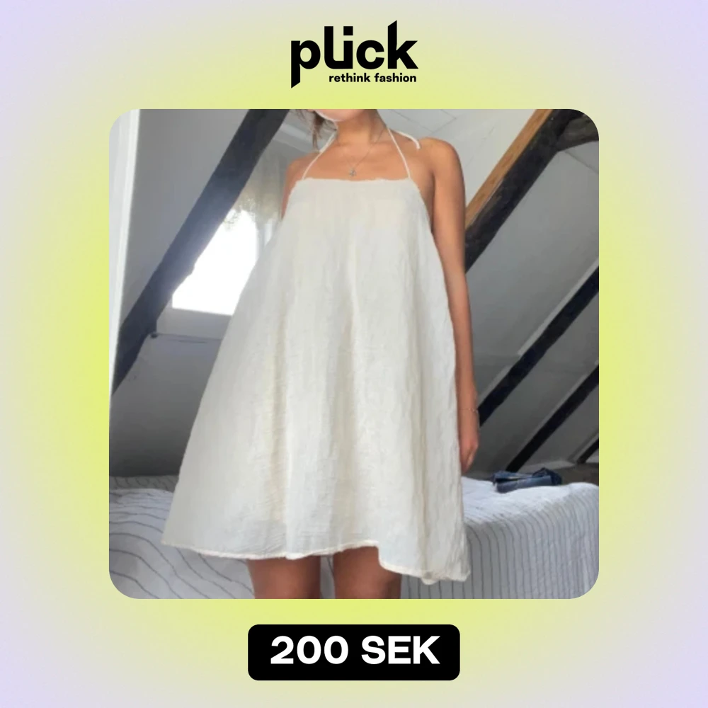 Sååååå fin krämvit klänning. Man knyter den runt halsen men det går även att ha den som en bandeau klänning. Bra skick!!🤍