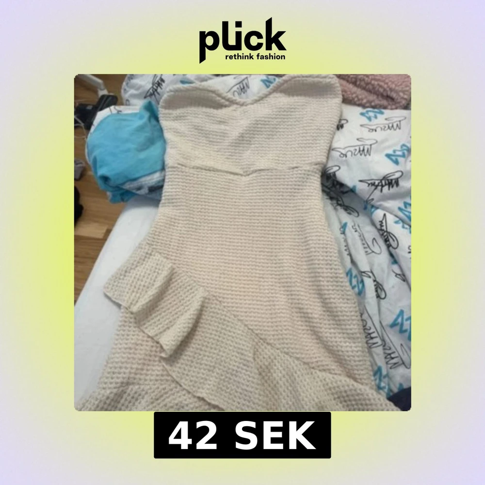 Säljer en söt axelbandslös klänning i krämfärgat, aldrig använt eftersom att den var för tight. Perfekt inför sommaren, studentfest osv